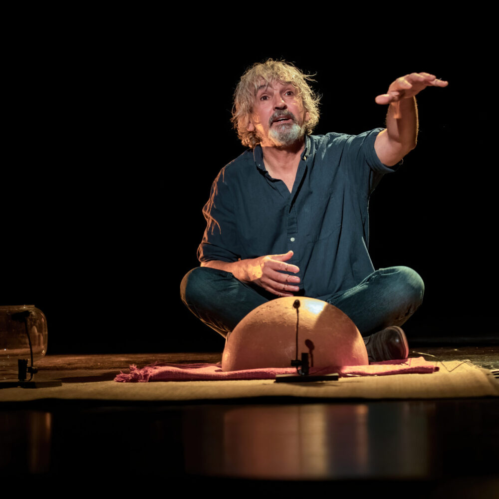 De ces errances et de ces rencontres, il rapportera une langue inventée, la pratique de nouveaux instruments (duduk, hulusi, hang, harmonium indien, percussions africaines, cubaines et brésiliennes) et le désir ardent de partager la flamme qui l’anime au travers de spectacles.